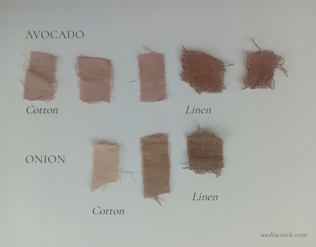 The cotton turned an absolutely gorgeous soft dusky rose and the linen turned more of a brownish-pink, nevertheless still quite beautiful. After a day I washed the third cotton sample (3rd from the left) in water and a little dish soap to see if the colour washed out, but it didn’t (hooray!)